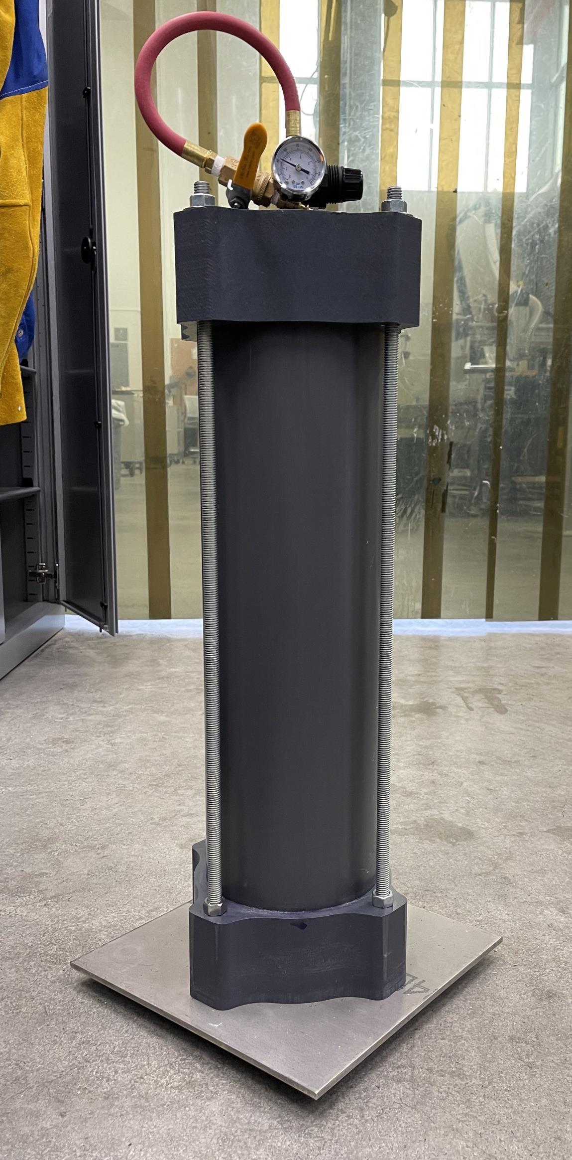 Completed hydrostatic pressure vessel after fabrication and assembly, built to expand testing capability in the lab.