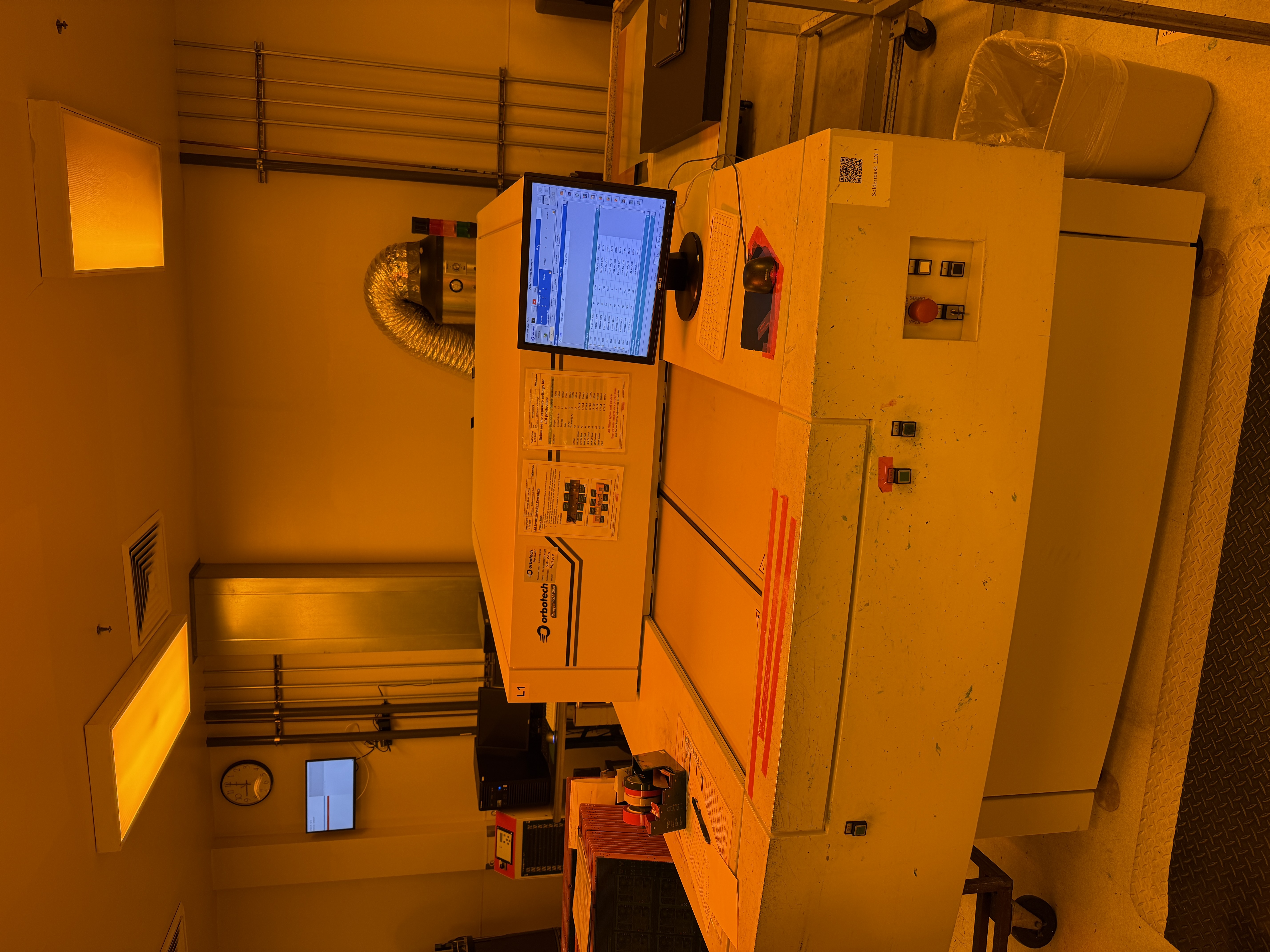 Laser direct imaging (LDI) machine used during the UV-sensitive film qualification work I supported for production implementation, helping reduce reliance on a single-point-failure process.